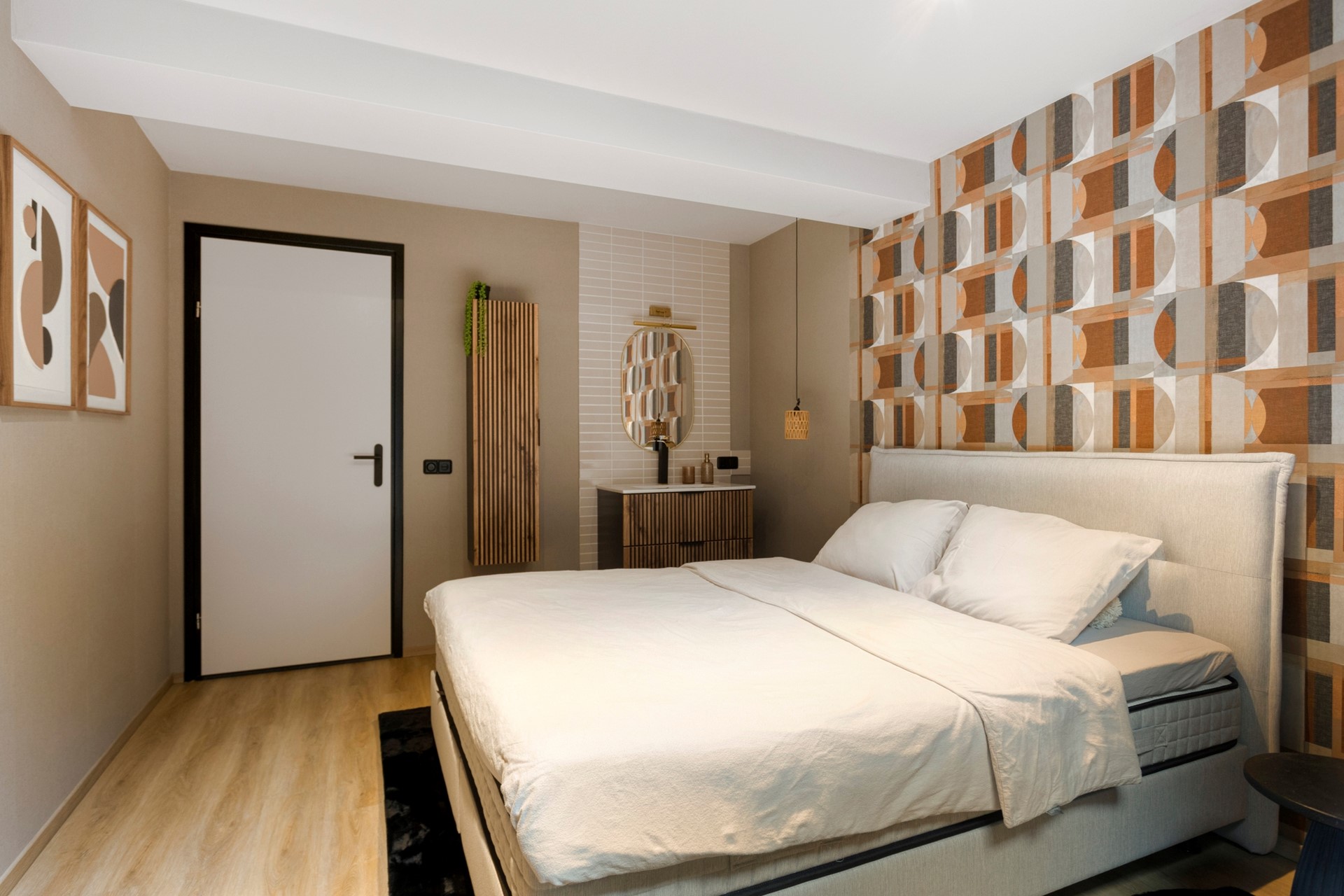 Aan de linkerzijde bevindt zich een zeer royale master bedroom over de gehele diepte van de woning (ca. 4,52m x 3,57m). Deze kamer is voorzien van een praktische vaste kastenwand.
