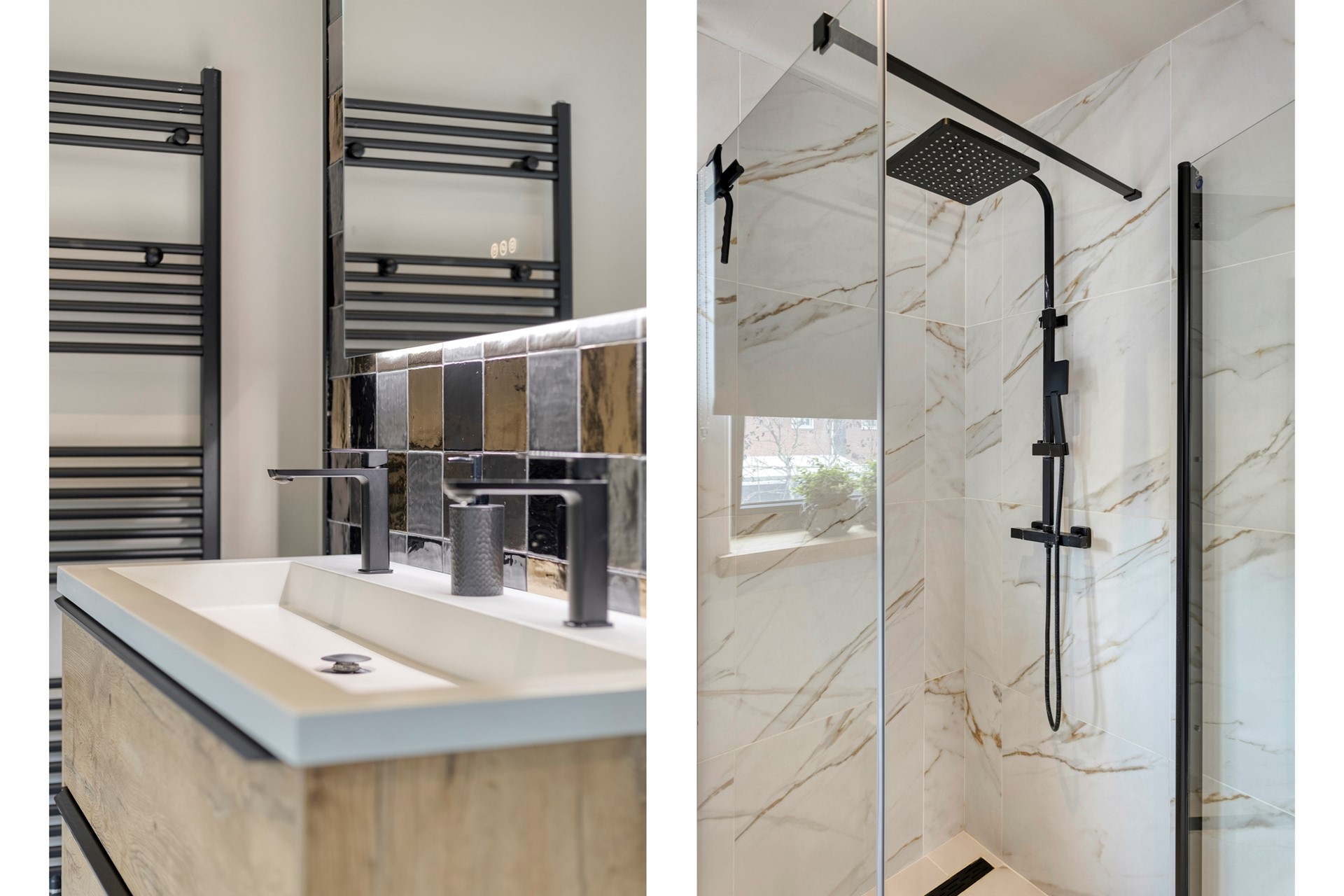 de huidige kastenwand en de aangrenzende garageruimte lenen zich door de aanwezige voorzieningen en maatvoering perfect voor de realisatie van een badkamer op de begane grond. Hierdoor wordt de woning in een handomdraai volledig levensloopbestendig.