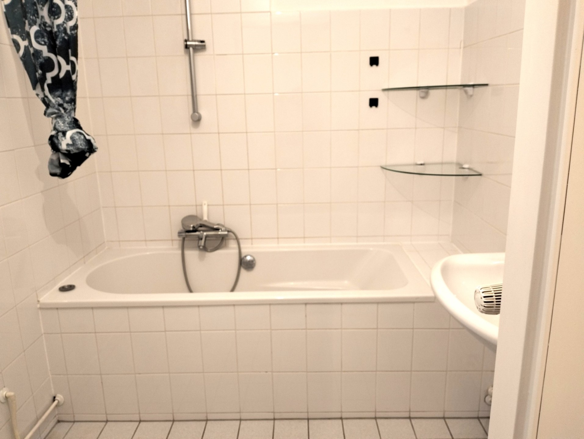 Badkamer voorzien van ligbad, wastafel, aansluiting voor wasapparatuur. Separaat gasten toilet.