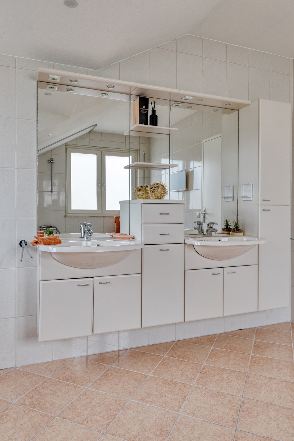 * Moderne badkamer met ligbad, toilet en dubbele wastafel in een stijlvol meubel