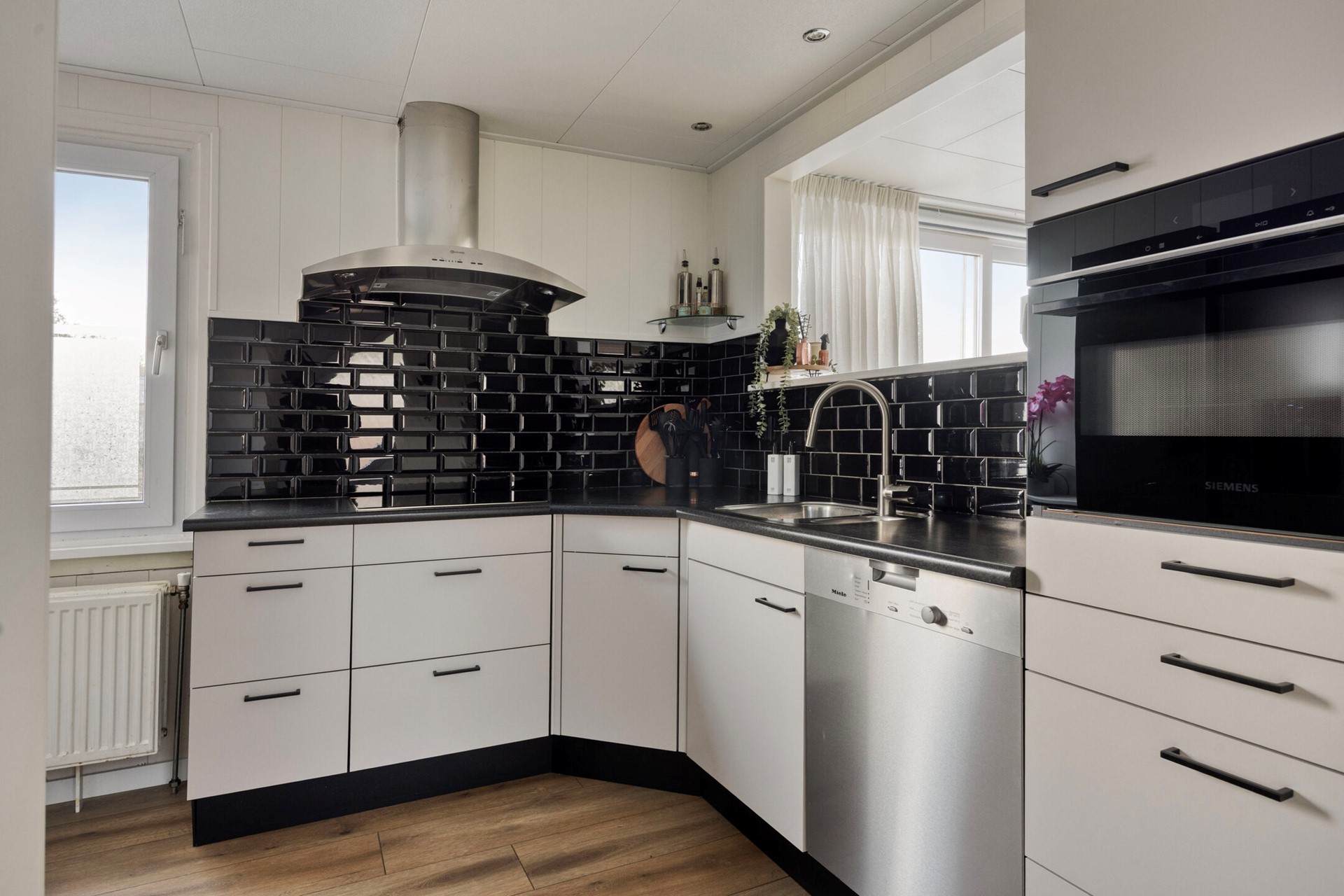 - In de keuken treft u diverse inbouwapparatuur zoals vaatwasser, spoelbak, afzuigkap en combi oven. Daarbij heeft u vanuit de keuken mooi buitencontact;