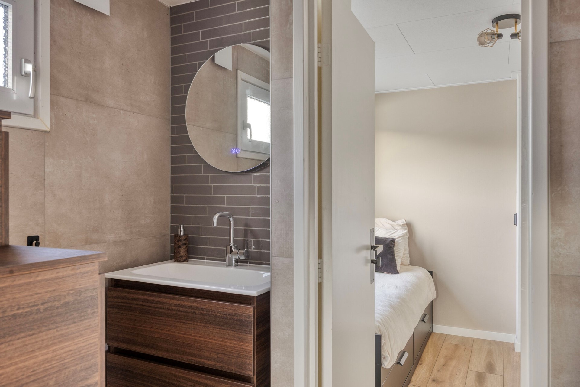 De volledig vernieuwde badkamer (december 2025) is modern en stijlvol uitgevoerd met een wastafel en inloopdouche en is bereikbaar vanuit beide slaapkamers. Ook het toilet is geheel vernieuwd, wat bijdraagt aan het frisse en instapklare karakter van de ark.