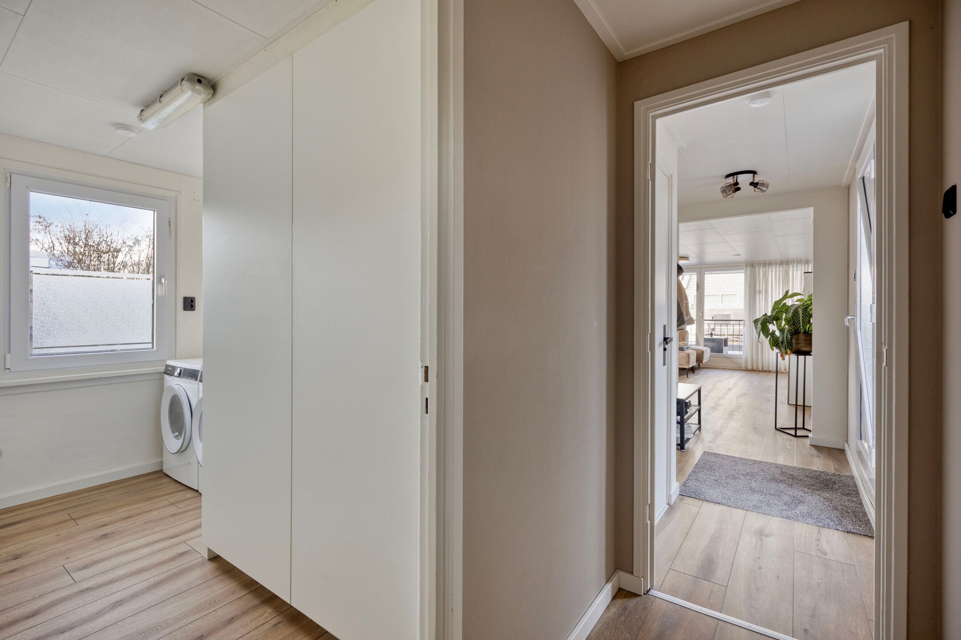 Aansluitend bevindt zich de bijkeuken met witgoedaansluitingen en extra bergruimte. Hier zijn ook de technische installaties geplaatst: de elektrische CV-installatie met 80 liter boiler (in eigendom) en de omvormer voor de 18 zonnepanelen, welke ongeveer 1,5 jaar geleden zijn geïnstalleerd.