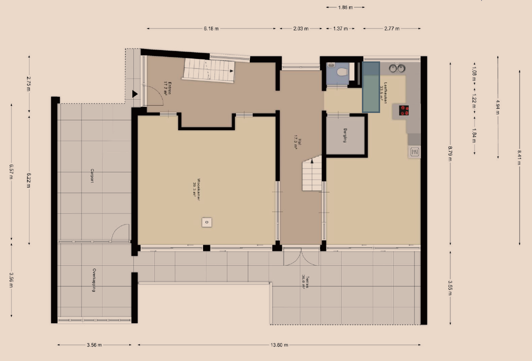 Keukenoppervlakte 34 m²