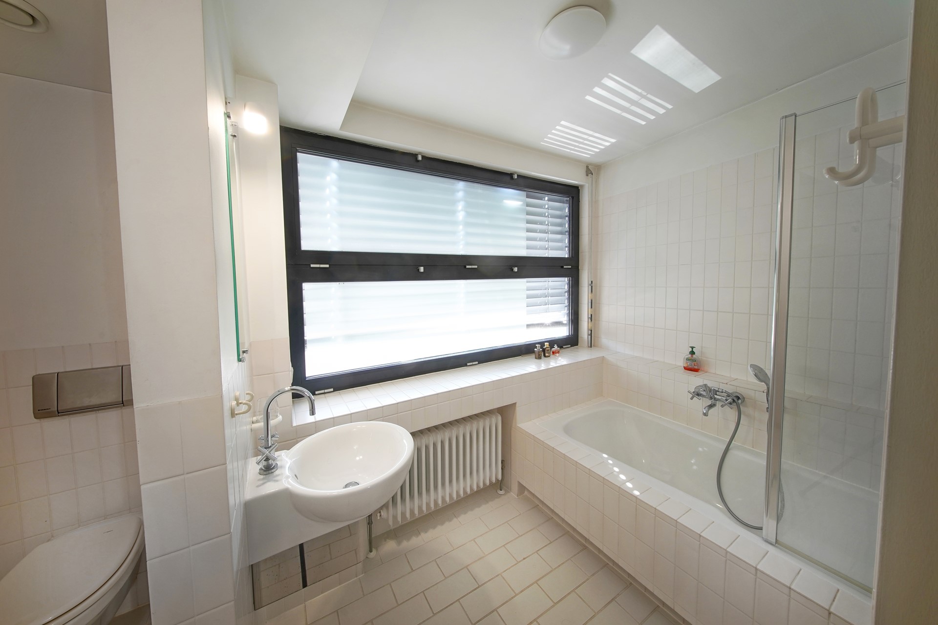 - Wanden deels betegeld, deels glad stuc- en schilderwerk