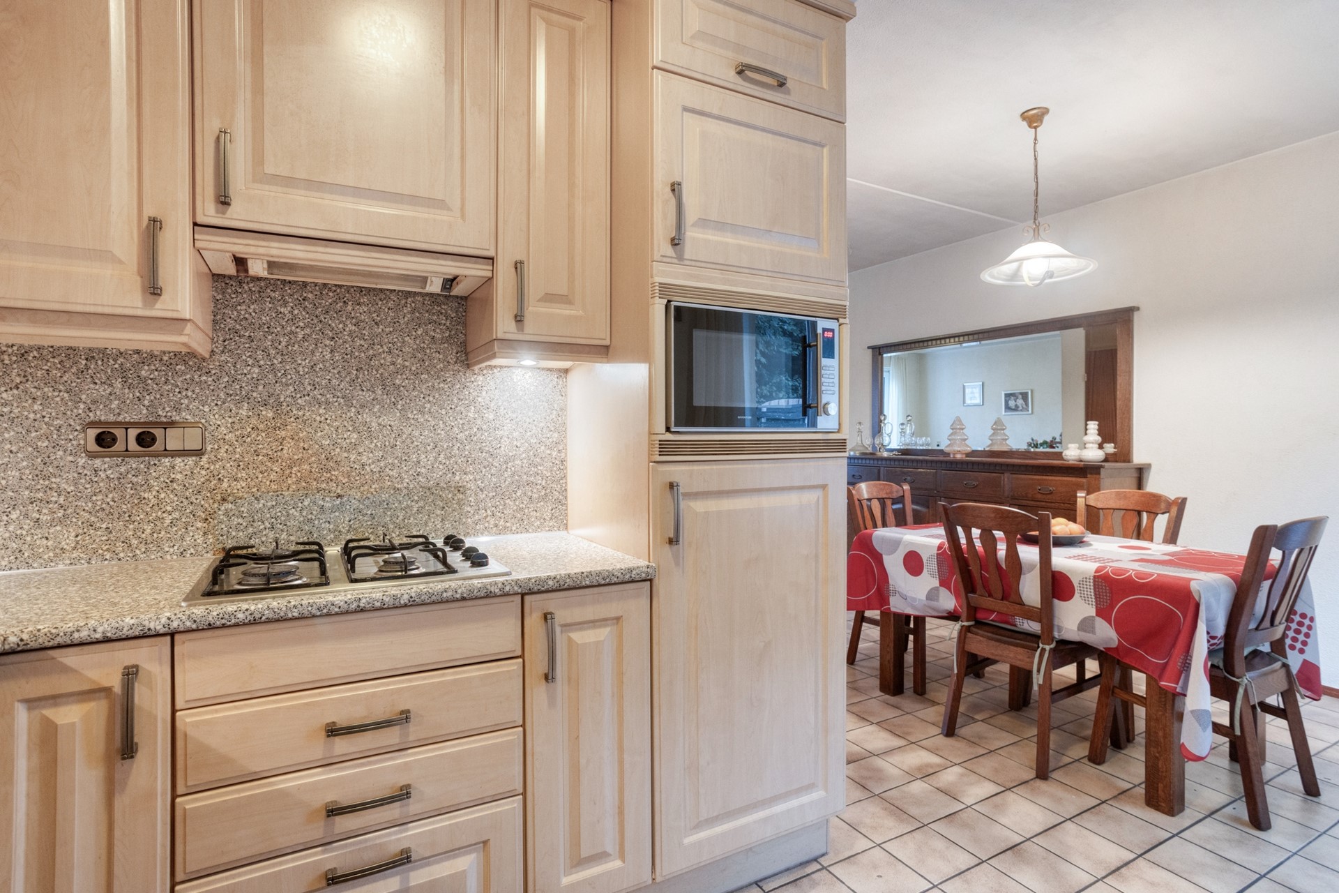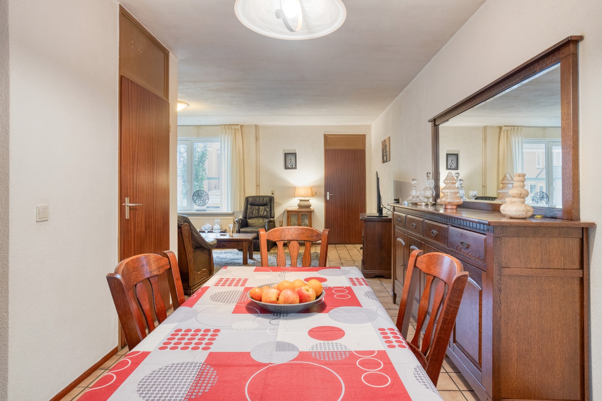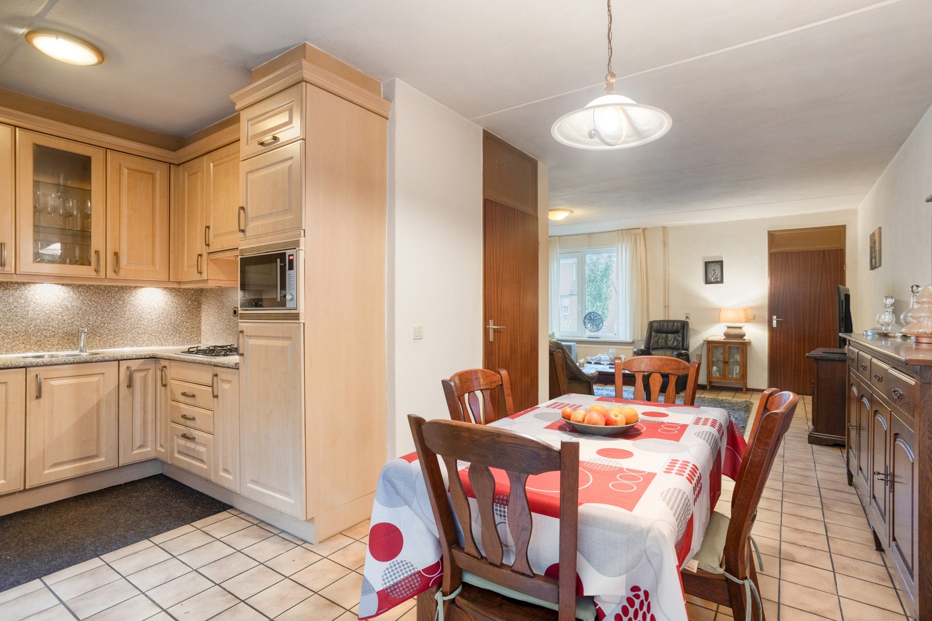 Bij binnenkomst valt direct de woonkamer op, die naadloos overloopt in de gezellige eethoek en de open keuken. Deze open indeling zorgt voor een prettige en ruime leefruimte waar je volop kunt genieten met familie en vrienden.